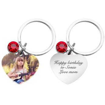 Personalized Birthstone Picture Keychain Custom Engraved Name & Photo Love Heart Keyring ID Key Tag Birthstone Gift for Women