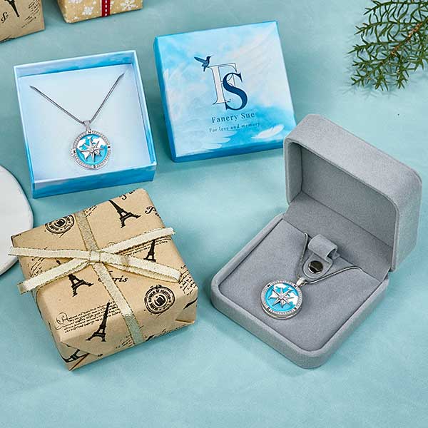 Unique gifts for women girls: The compass locket necklace come with a "fanery sue" logo gift box, by personalizing the locket with her name or the names of her loved ones, you can create a sentimental keepsake that symbolizes your love and appreciation
