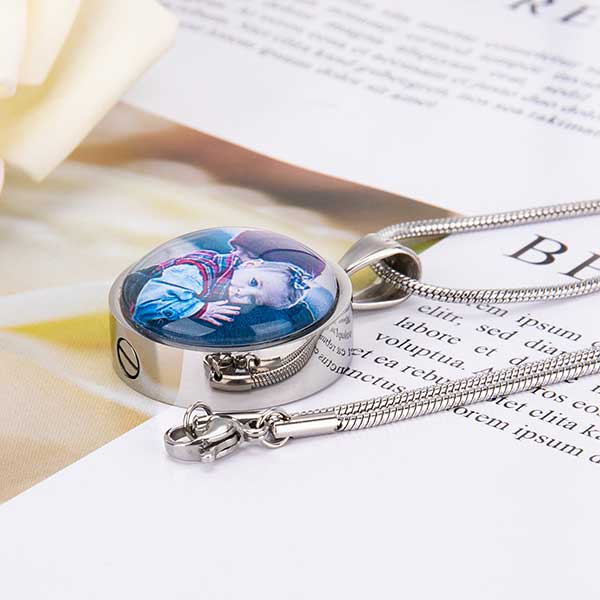 Personalized Photo Urn Necklace for Ashes: This memorial ash holder necklace can be customized with a picture of your lossed loved one or pet and the names, special dates and your persnal sayings.Sweet keepsakes and memorials,take the memories of your loved one with you no matter where you go. Or you can put the photo cremation necklace for ashes in your house for displaying.