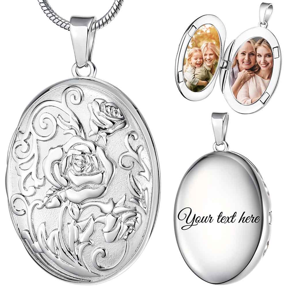 Our necklace also offers the option to engrave words, adding a heartfelt message, a meaningful date, or a name to further personalize your piece. This Oval Rose Locket Necklace Locket is a versatile and meaningful accessory that will be treasured for years to come.