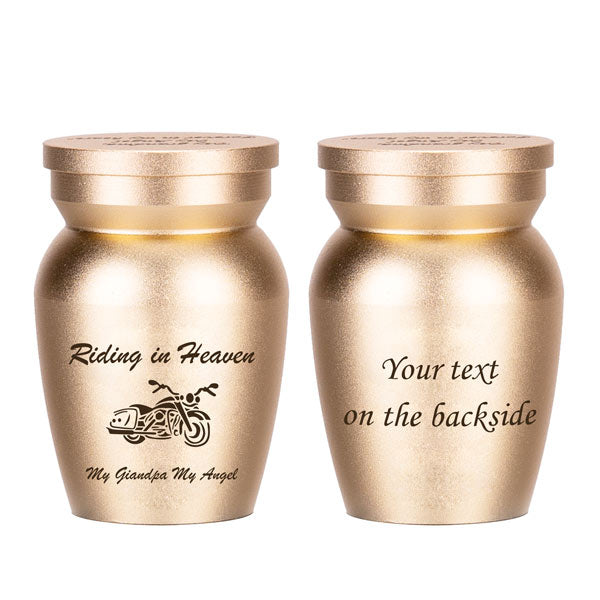 [ Mini Urn Size ] Please Note these urns are small keepsakes.They're both mini size. The bigger size is about 2.8*1.6 inches and the usable capacity is 1.66 ounces, about 3 tablespoons.The smaller size is about 1.6*1.2 inches and the usable capacity is 0.4 ounce,about 0.8 tablespoons. Package Quantity: 1pc.