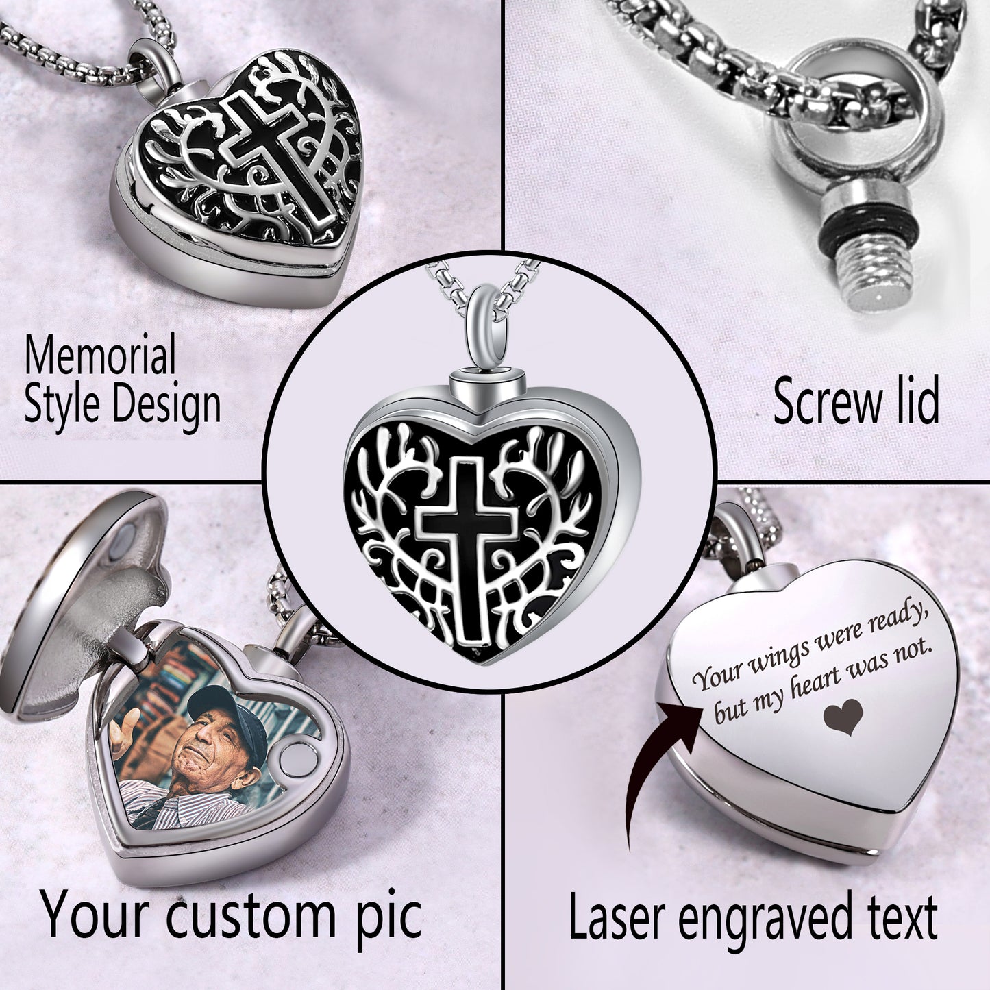 This Custom Cremation Pendant Necklace is a heartfelt tribute to honor the memory of your loved one and keep them close to your heart always. Crafted with reverence and care, this pendant features a beautifully detailed cross pattern surface, symbolizing faith, love, and eternal remembrance.