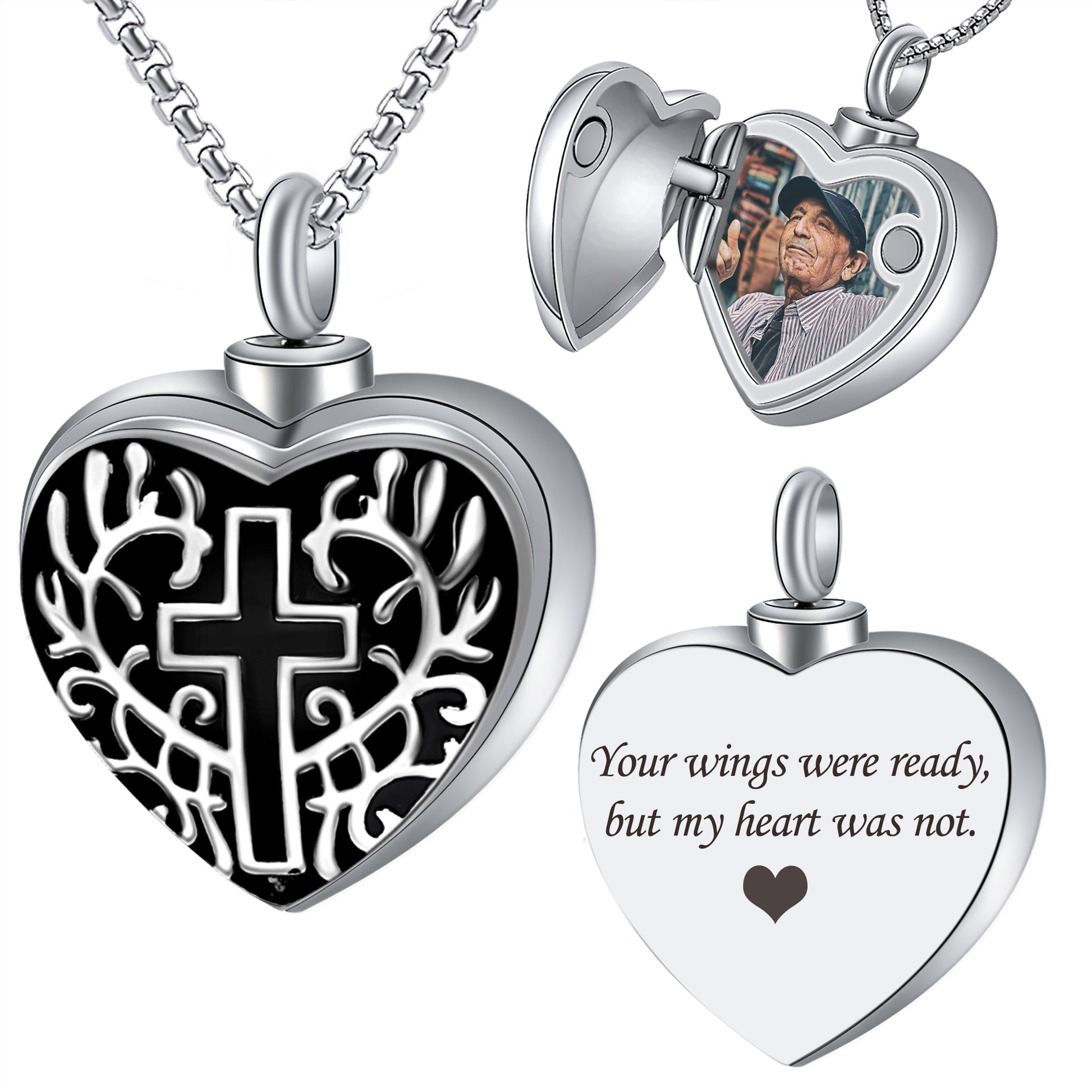 Designed to hold a small portion of cremated remains, this pendant serves as a cherished keepsake, providing comfort and solace during times of grief. The cross motif represents the enduring strength of faith and the promise of eternal life, offering reassurance and hope to those who wear it.