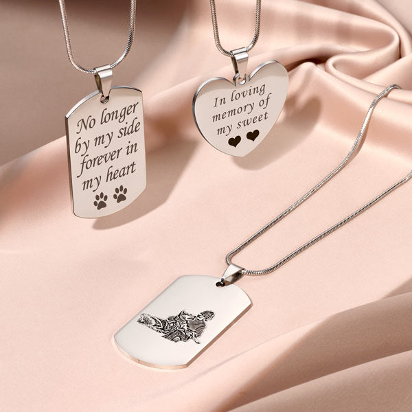 Now, ordering personalized memorial jewelry is a breeze with our simple, streamlined process. Start by personalizing your design through our available options, uploading a high-resolution photo and the text you want to engraved, choosing a font.