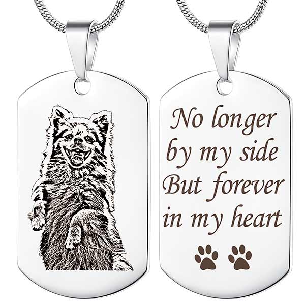 Shop the laser engraved dog tag necklace which uses laser sketching technology to perfectly recreate a photo of your friend or loved one, making it the perfect gift for the holidays.
