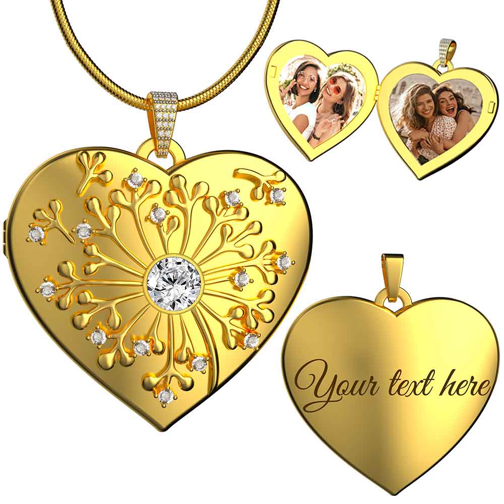 CZ Dandelion Locket Necklace with Picture