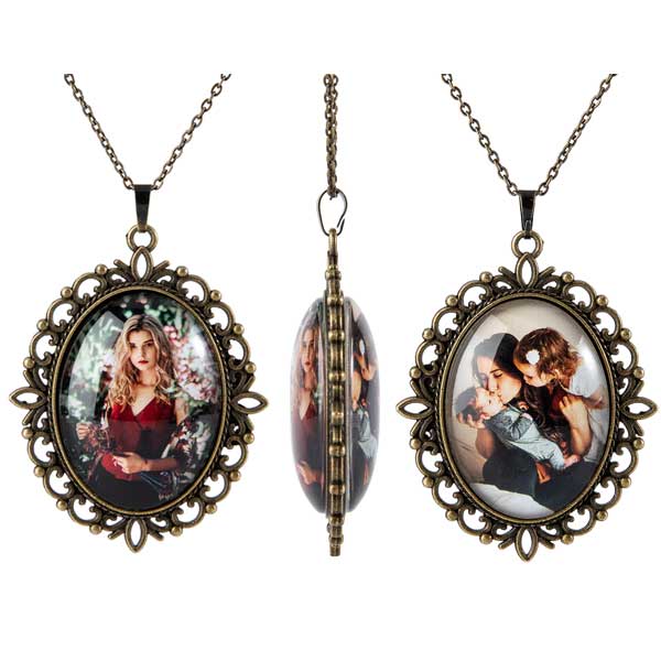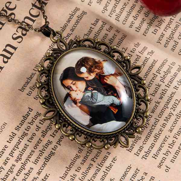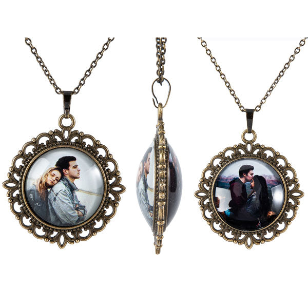Personalized Photo Necklace - This retro pendant necklace can be customized with 2 of your personal pictures/images/logos. The pictures are full color so you'll receive the exact same picture in full color on the dog tag necklace as the one you submit. You can upload 2 photos and one for each side.