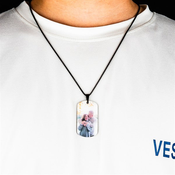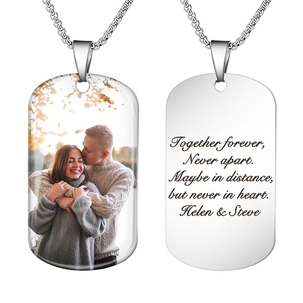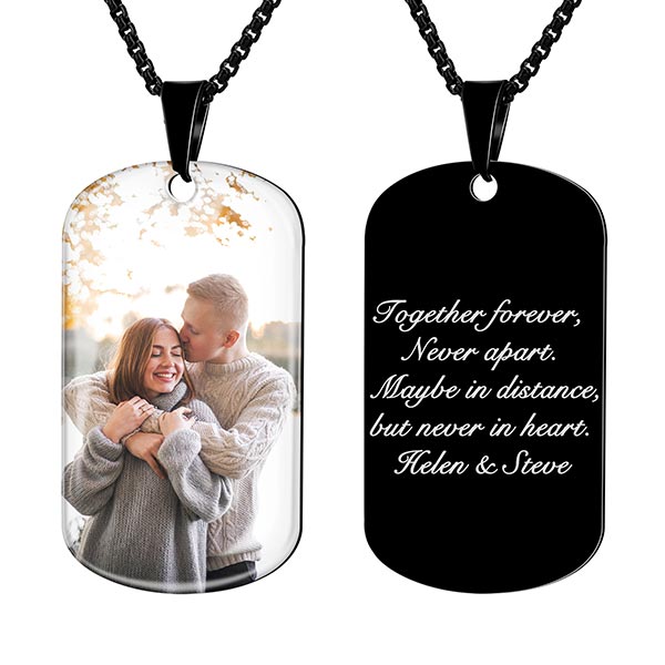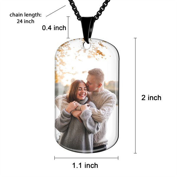 This Military Dog Tag Necklace for Men seamlessly blends the classic military dog tag design with the ability to customize it with a photo and engraved words, creating a unique and meaningful accessory. The photo is protected by resin, which is waterproof and durable. You could engrave any one's picture who bring your an unforgettable memories and the text you want to engraved on the back.
