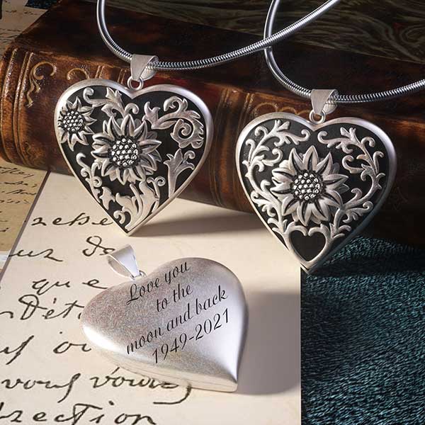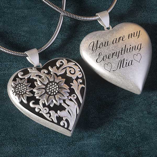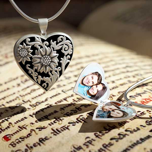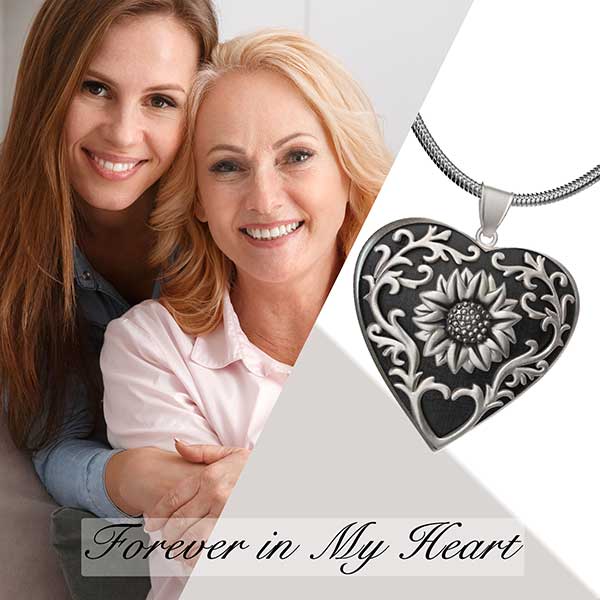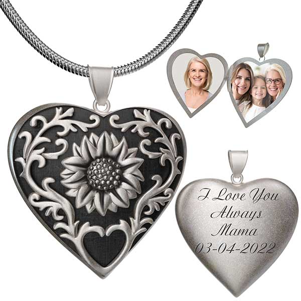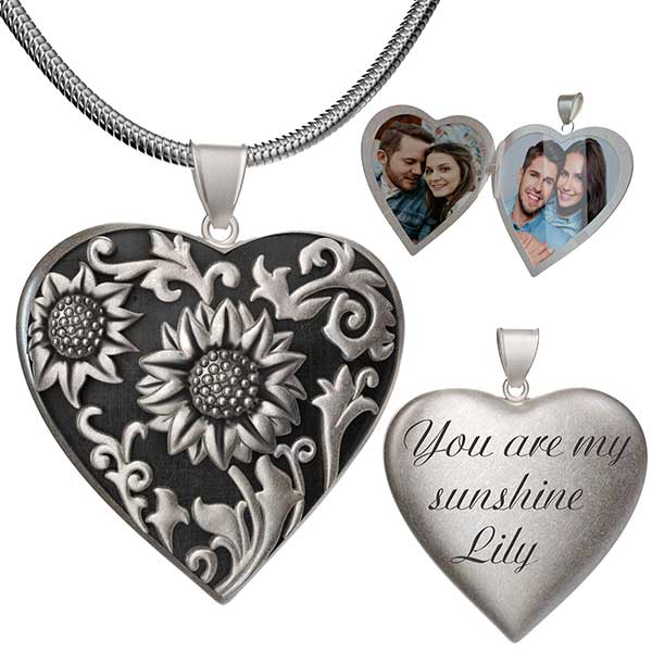 Sunflower Heart Photo Locket Pendant Personalized