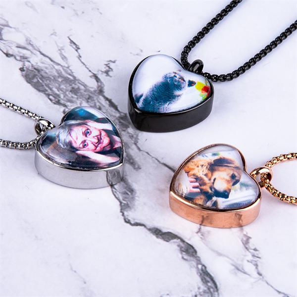 Heart Urn Necklace for Ashes with Pictures