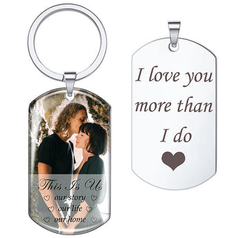 Custom Dog Tag Keychain for Men - Are you still using the only engraved text keychain as a gift for your loved boyfriend? This customizable keychain can be printed your picture & engrave text on it. It would be much more special and meaningful as a memorial gift.