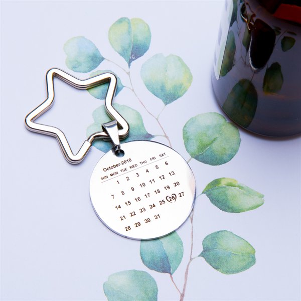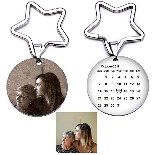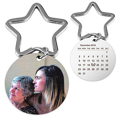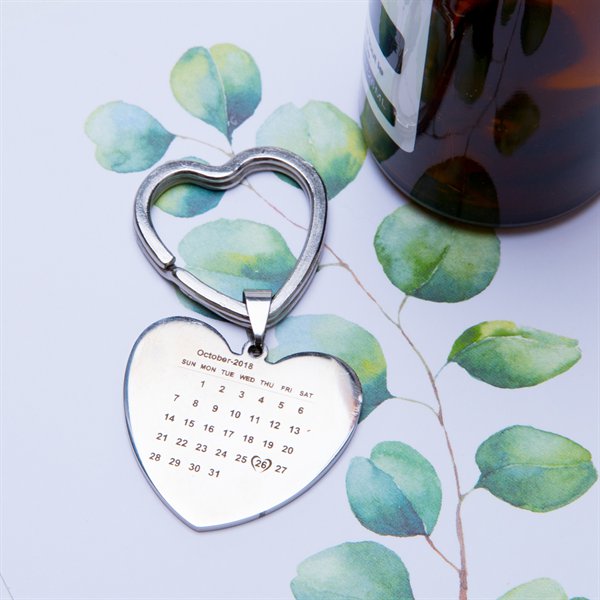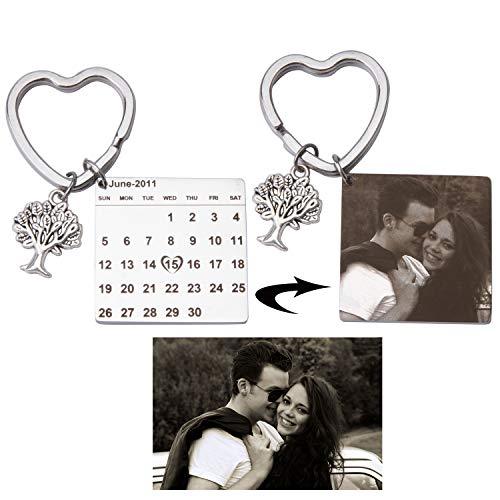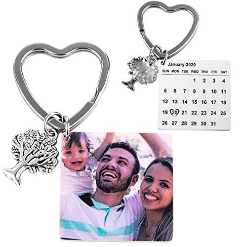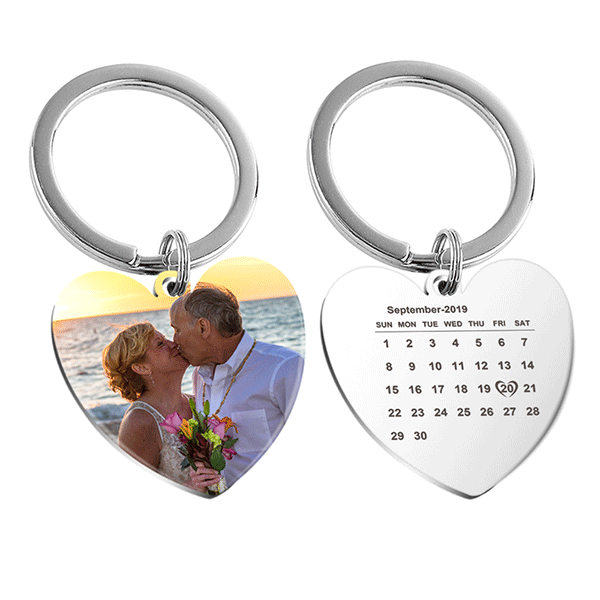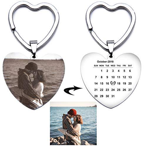 Fanery Sue Custom Calendar Photo Keychain Personalized Engraved Special Day Anniversary Memorial Gift Heart Keyring ID Key Tag