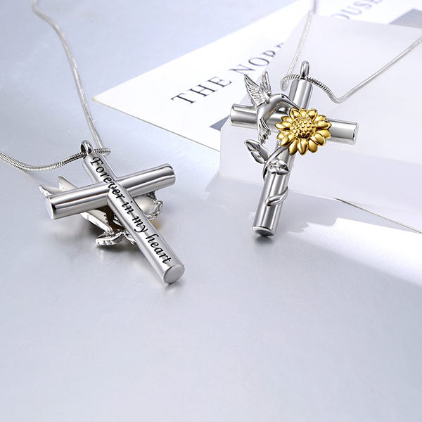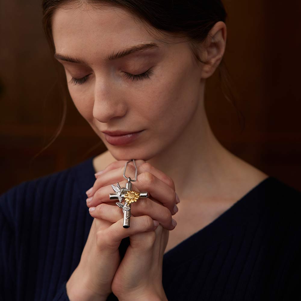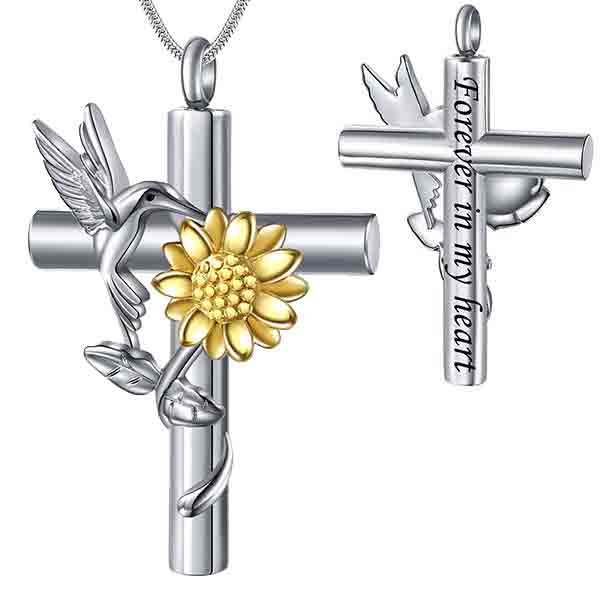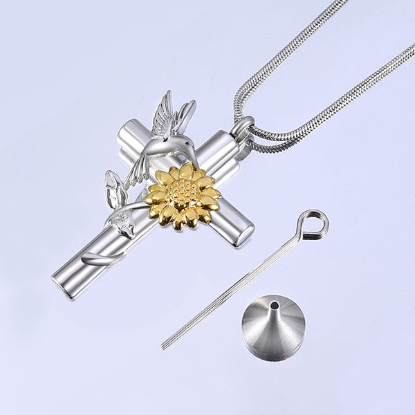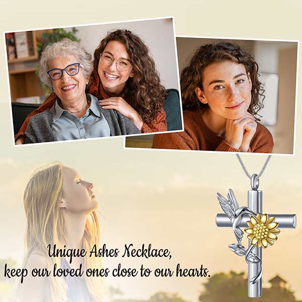 Embrace the beauty of nature with our stunning Hummingbird and Sunflower Urn Necklace. The intricately detailed hummingbird symbolizes joy, love, and resilience. The sunflower represents loyalty and adoration. Its bright and cheerful presence captures the essence of everlasting bonds, providing comfort and solace.