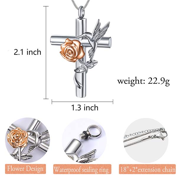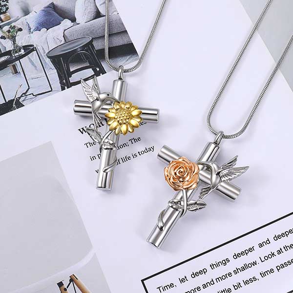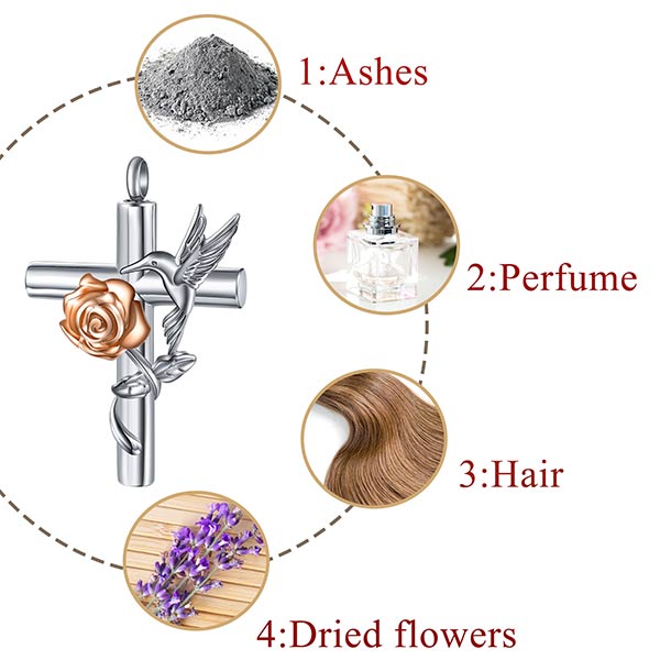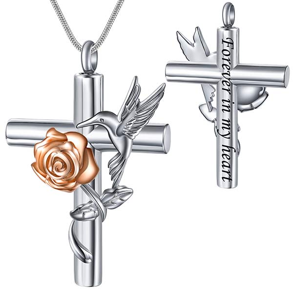 Hummingbird Rose Cremation Jewelry for Ashes