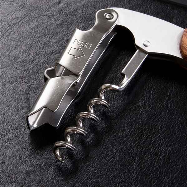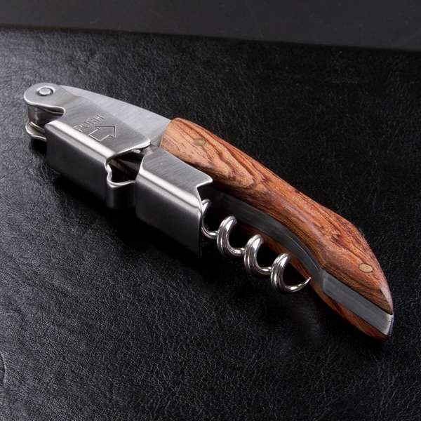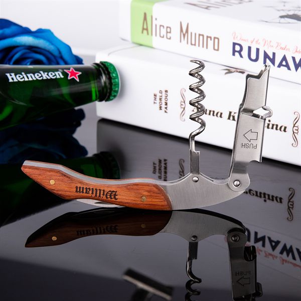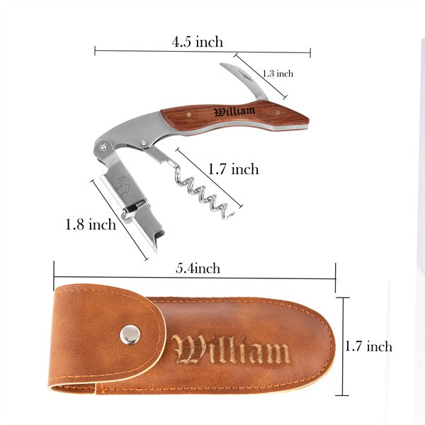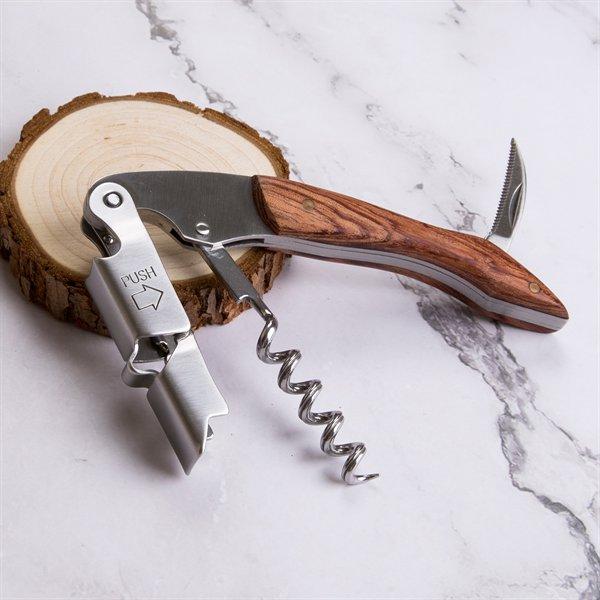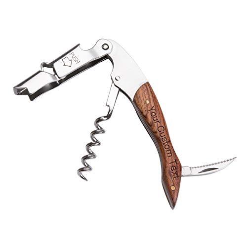 Personalized Custom Engraved Waiters Corkscrew - 3 in 1 Wine Opener with Rosewood Pull Tap Handle Bottle Opener and Serrated Foil Cutter