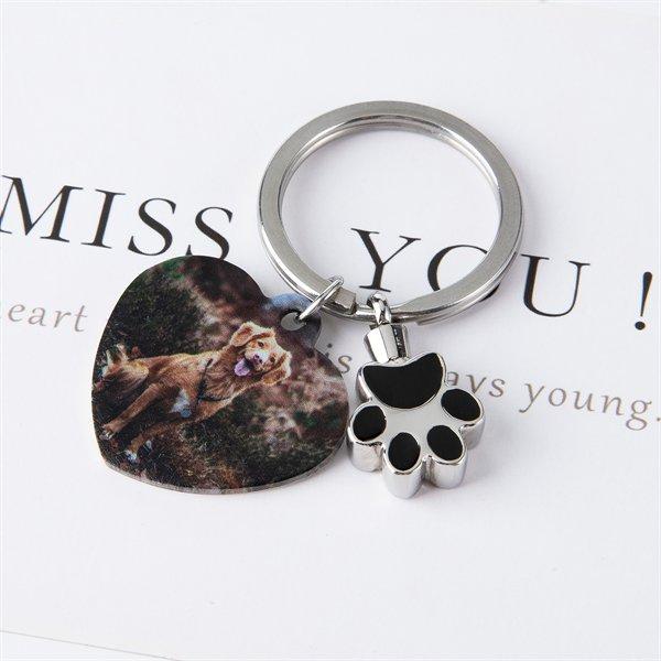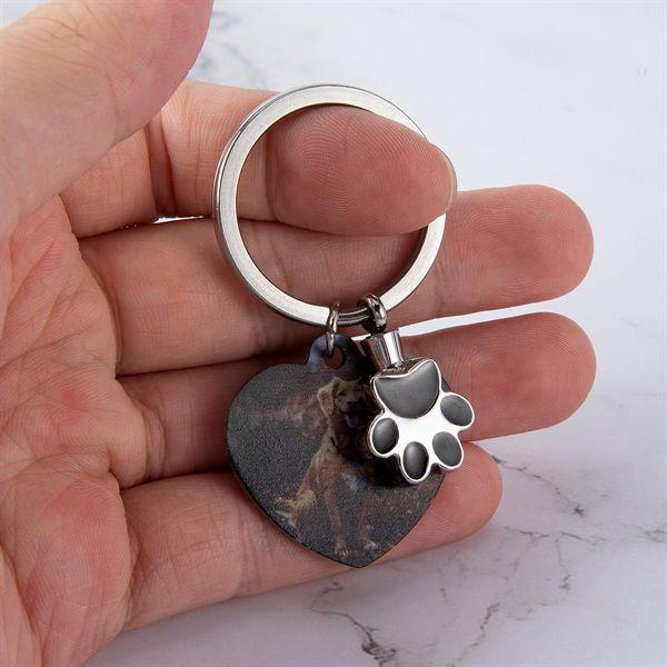 Celebrate the bond between you and your furry friend with our exquisite Personalized Pet Photo Urn Keychain. This unique accessory is more than just a keychain; it's a touching tribute to your beloved pet, combining a heart keychain with a special paw print urn component.