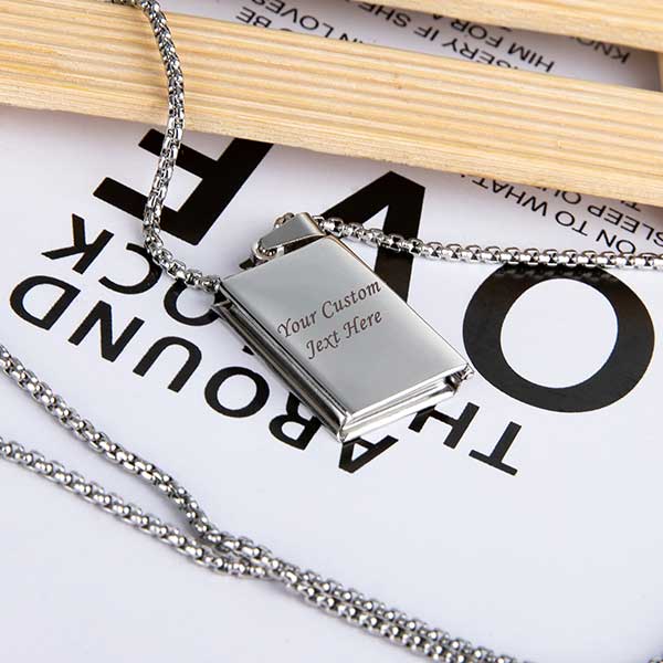 This Book Style Personalized Photo Locket Pendant takes the form of a charming book, symbolizing the chapters of your life and the stories held within. This timeless and elegant design adds a touch of sophistication to your accessory collection, making it a standout piece.