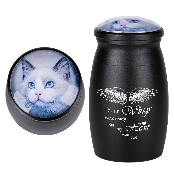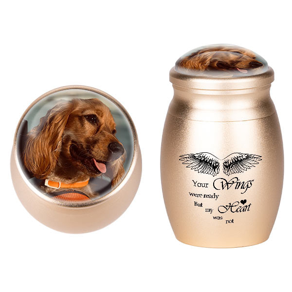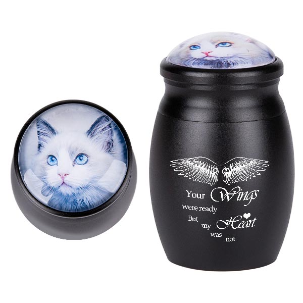 MEMORIAL CREMATION DECORATIVE – We have designed serval patterns for you, The paw prints of pet, the angel wing, flying heart. Some touching verse, “God has you in his arms, I have you in my heart.” We hope you would like them and this urn can be the link between you and the one who always living in your heart. It’s perfect as a container for ashes, hair, nail, pet’s teeth, dried flower or perfume etc.