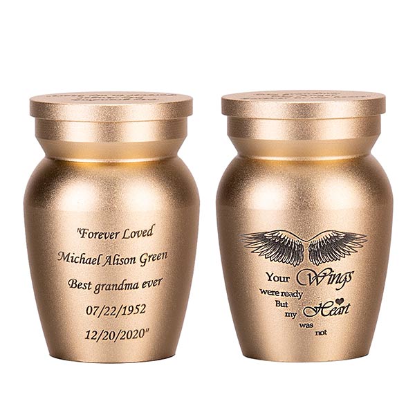 CUSTOMIZED URN – We can provide you customizable service to create a personalized Keepsake urn of you own, which will be truly for what you need. You can Summit the text you want to engrave on the urn, engraved name, dates or any inscription on the back of the urn to memorize your loved one.